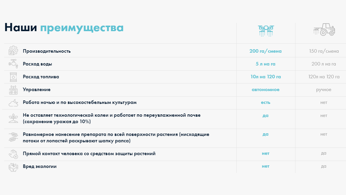 Cropfleet is ahead of competitors in the development of robotic systems (replacement of drone batteries and replacement of tanks with working solution), and uses its own software for drone control rather than third-party developments, the flotilla of drones can count 6 units in simultaneous flight under a single control