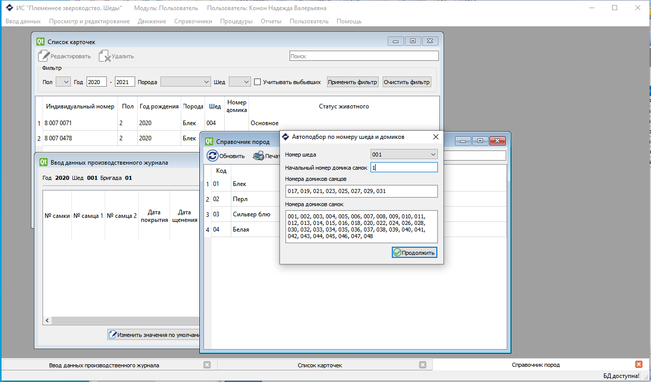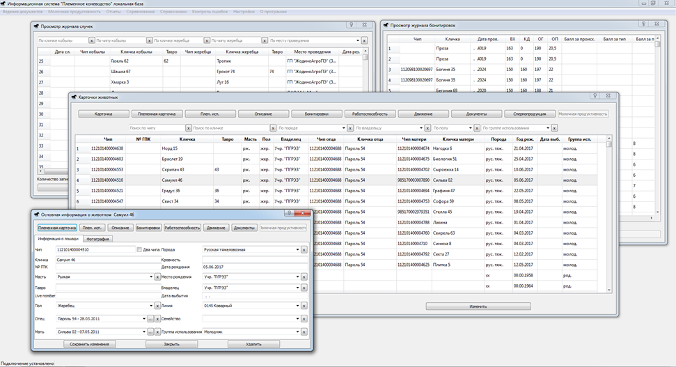 - automation of storing and providing data of primary breeding and zootechnical accounting of the subjects of breeding farms;