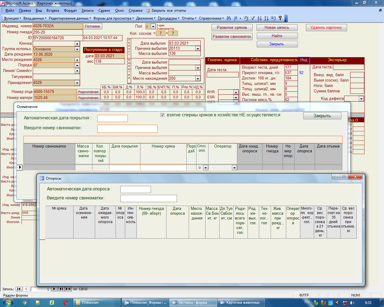 Automated breeding process management system "Plemelit"